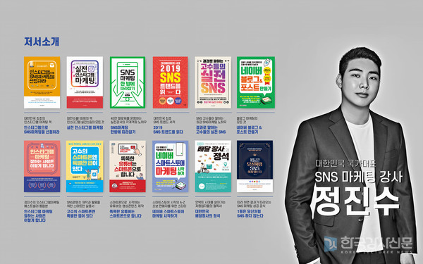 [한국강사신문 한상형 기자] ‘한국강사신문 대표가 만난 강사’ 인터뷰로 SNS 국가대표 정진수 강사를 만났다. SNS 강의와 실무를 11년째 이어오고 있다. 2016년, 대한민국 최초로 인스타그램 마케팅 도서를 집필한 이후 지금까지 꾸준히 SNS 분야에서 강의와 컨설팅을 이어오고 있다. 현재 감성컴퍼니 대표로서 기업, 공공기관, 소상공인을 대상으로 SNS 마케팅 강의를 진행하고 있다. 동시에 여러 SNS 채널을 직접 운영하며 실전 경험을 바탕으로 한 온라인 홍보대행도 함께하고 있다. 저서로는 『1등은 당신처럼 SNS하지 않는다(나비의 활주로)』 외 총 12권이 있다.