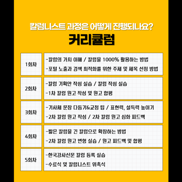 칼럼을 통해 누구나 전문가가 되는 5주 집중 프로그램