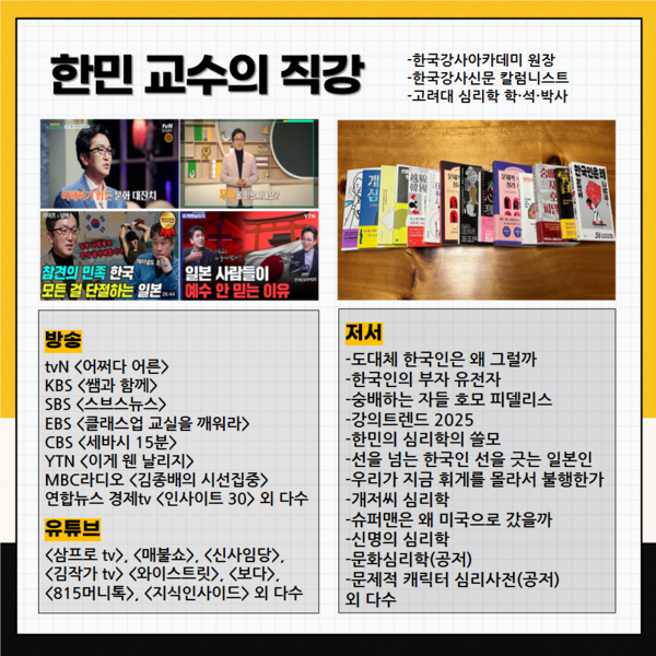 강의는 한국강사아카데미 원장이자 고려대학교 문화심리학 박사인 한민 교수가 직접 진행한다. 한 교수는 다수의 방송 출연과 저서 활동을 통해 대중에게 잘 알려진 강사로, 이번 과정에서 수강생들의 글쓰기 역량을 끌어올릴 실질적인 피드백을 제공할 예정이다.