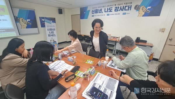[한국강사신문 정헌희 기자] 가천대학교 평생교육원이 주관하고 한국강사교육진흥원의 김순복 원장이 진행한 성남시 지원사업 '신중년, 나도 강사다' 프로그램의 14주차 특강이 9월 27일 10시부터 13시까지 성황리에 마무리되었다. 이번 특강은 1교시에는 스피치 커뮤니케이션, 2~3교시에는 '에고그램 진단 활용 미래설계'라는 주제로, 신중년 세대가 자신의 자아를 이해하고 미래를 설계할 수 있도록 돕는 워크숍 형식으로 진행되었다.
